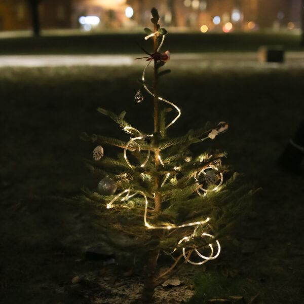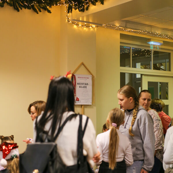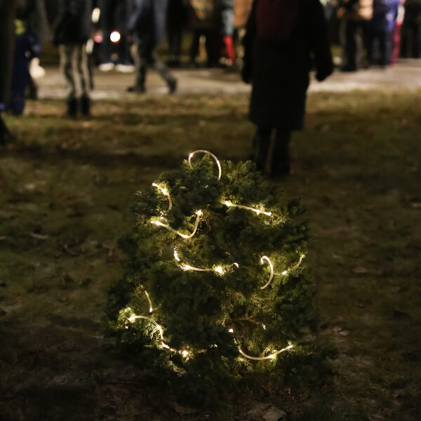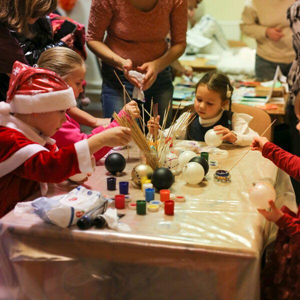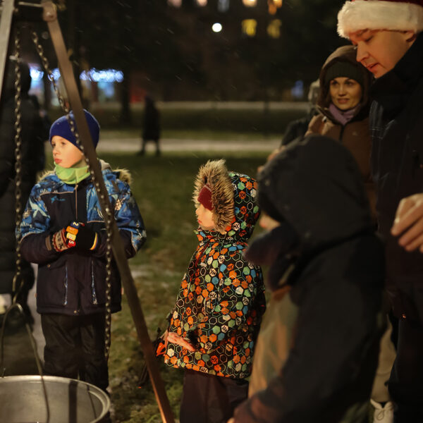 Mazākās eglītes iedegšana, siltais upeņu dzēriens un pīrādziņi Kalna parkā. Ziemassvētku tirdziņa ietvaros BJC "Laimīte" telpās eglīšu bumbuļu apgleznošanas meistarklase kopā ar mākslinieci Irinu Kričalo, kā arī Sv. Jāņa palīdzības senioru centra “Duntes Ozoli” radīto rokdarbiņu labdarības tirdziņš.