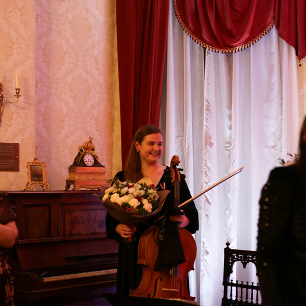 Klasiskā dueta mūzikas koncerts čellistes Māras Botmanes un soprāna Terēzes Greteres izpildījumā Dauderu muzeja vēsturiskajā salonā.