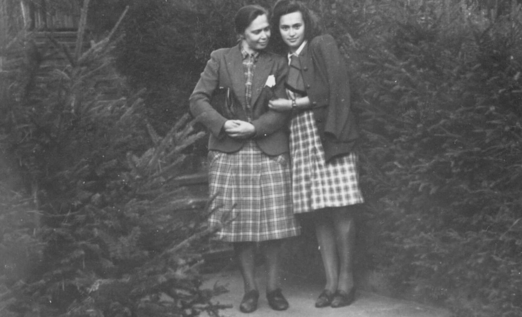 Draudzenes uz mūžu Lūcija un Dzidra (no kreisās) pie skolas Sīmaņa ielā 14 | 1940tie