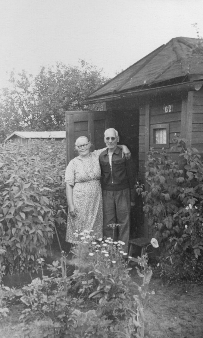 Sīmaņa ielas iedzīvotāji Aleksandrs un Lūcija Aleksandroviči Visbijas prospekta dārziņā |