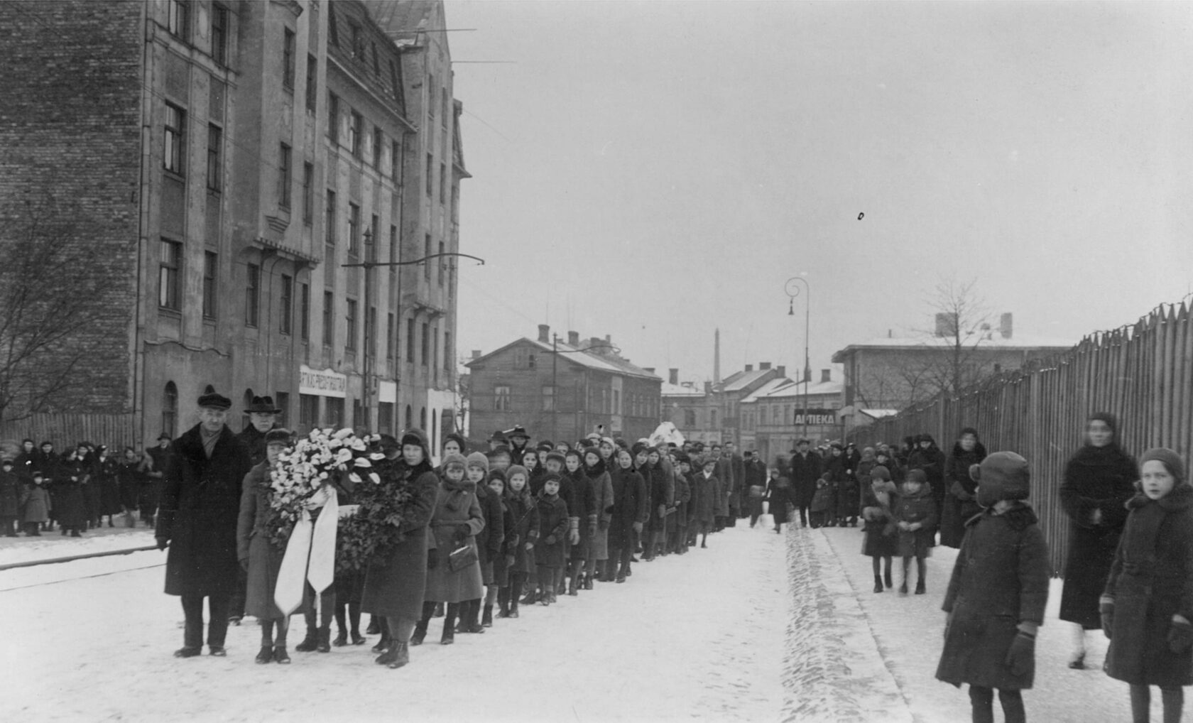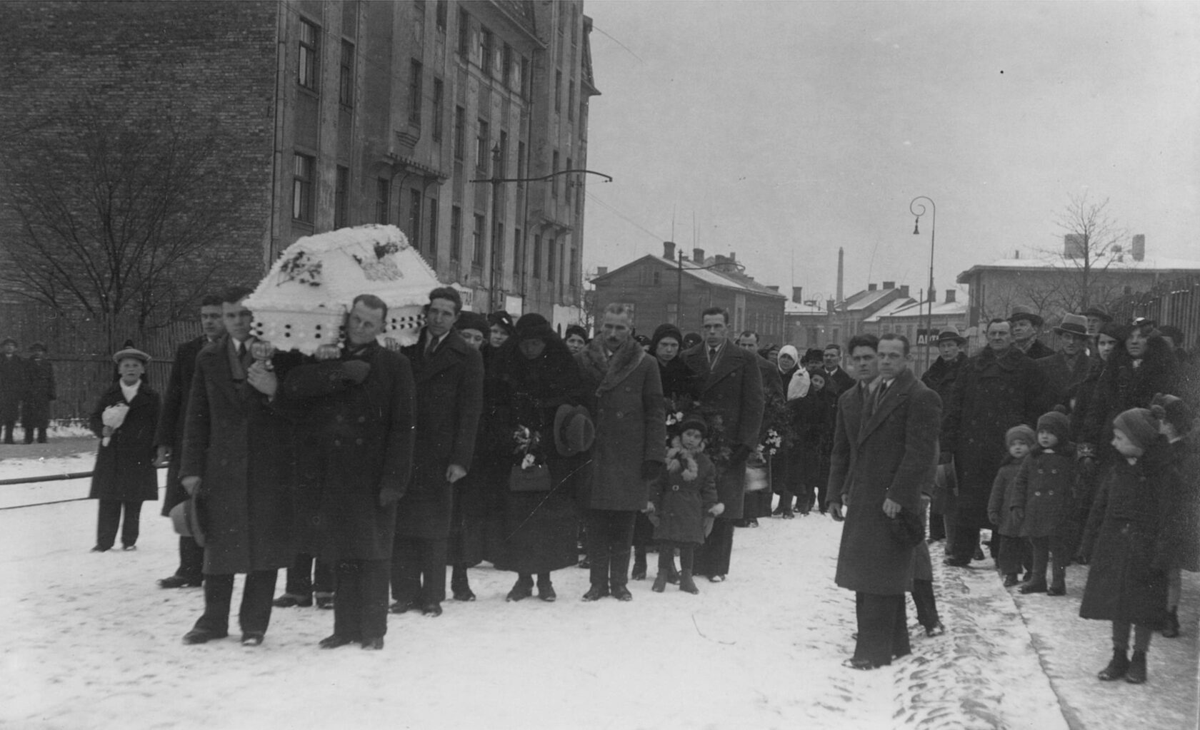 Voldemāra Bērzkalna (dzim. 03.03.1924.) bēres Sarkandaugavas ielas sākumā | 01.1936.