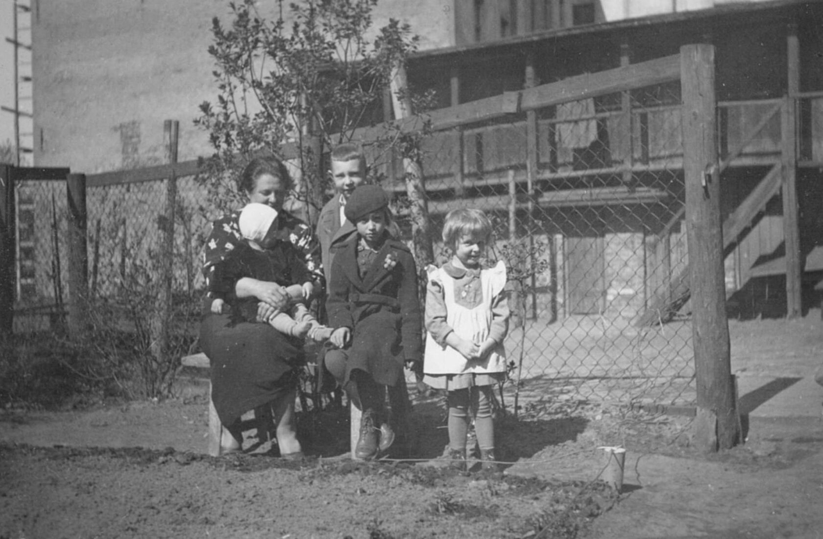 Lūcija Klauģe (vidū) Alekša ielas 5 pagalmā | 1930to beigas