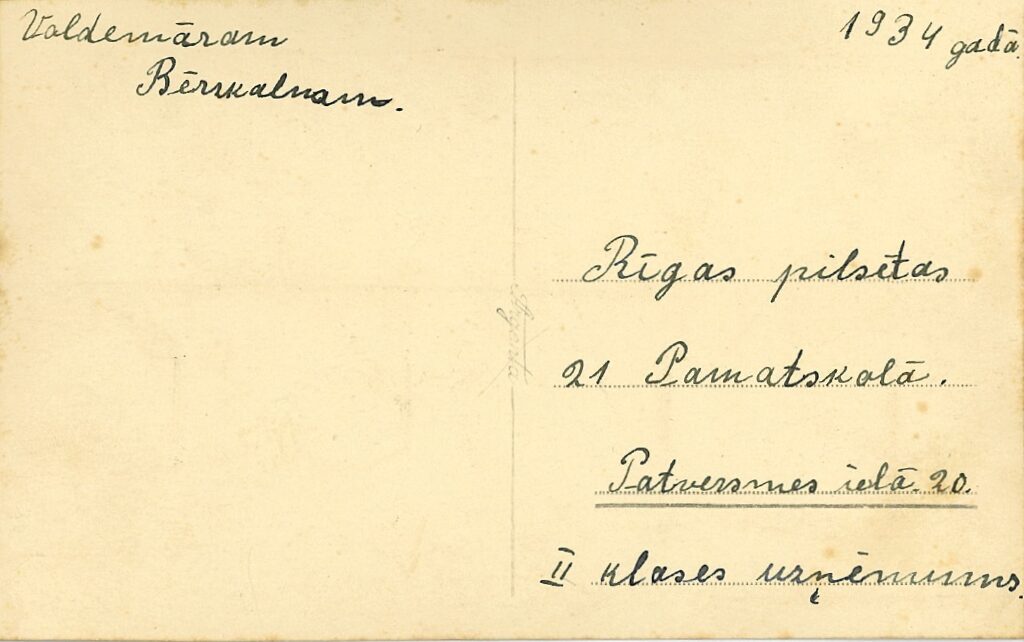 Voldemārs Bērzkalns (3. rindā otrais no kreisās) 2. klasē 21. pamatskolā Patversmes ielā 2